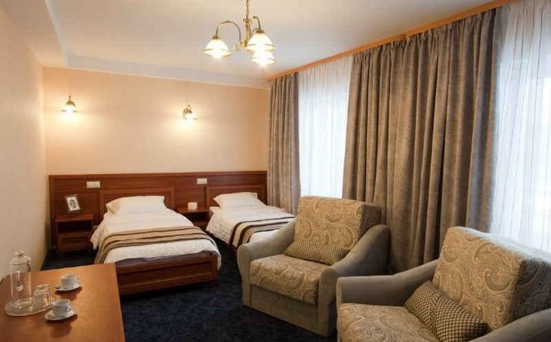 Мебель в номере: 2 кровати, кресло, прикроватные тумбочки, сервант.